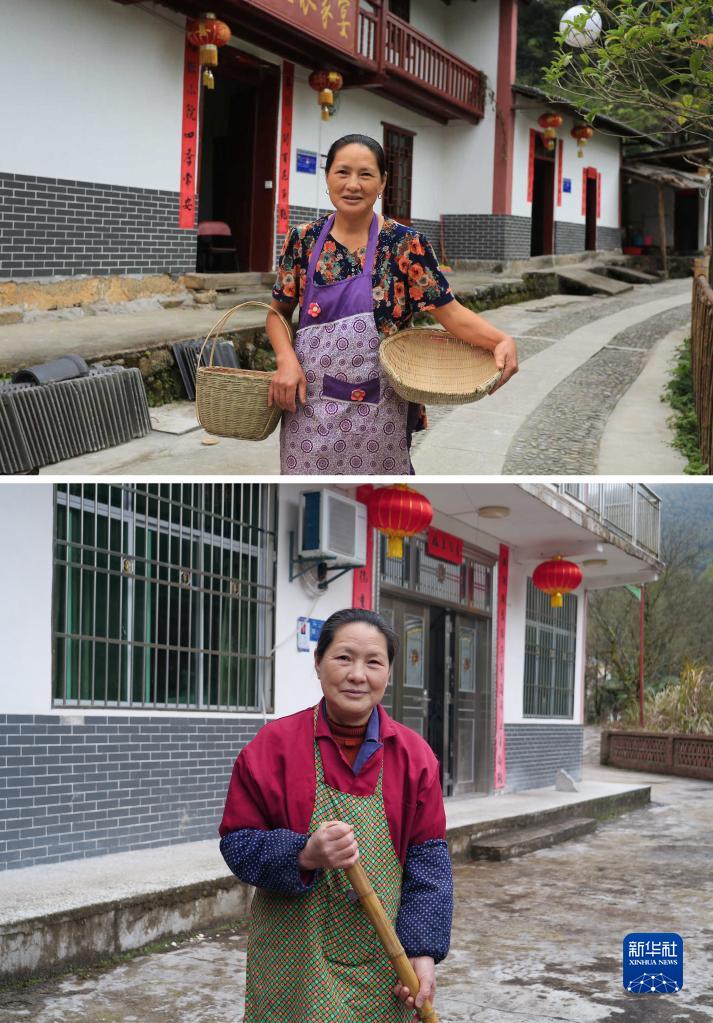拼版照片:上圖為江西省井岡山市神山村村民彭夏英站在自家開(kāi)辦的農(nóng)家樂(lè)前(2016年9月10日攝,新華社記者萬(wàn)象攝);下圖為彭夏英站在自家開(kāi)辦的民宿前(2022年2月15日攝,新華社記者郭杰文攝)。新華社發(fā)