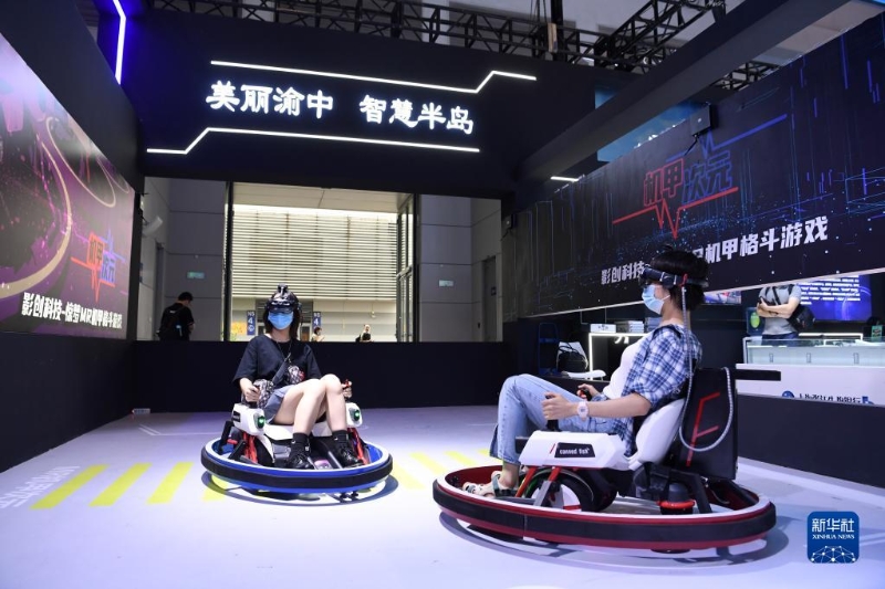 2021年8月23日,觀眾在2021中國國際智能產(chǎn)業(yè)博覽會上通過MR技術(shù)體驗機甲格斗游戲。新華社記者 唐奕 攝