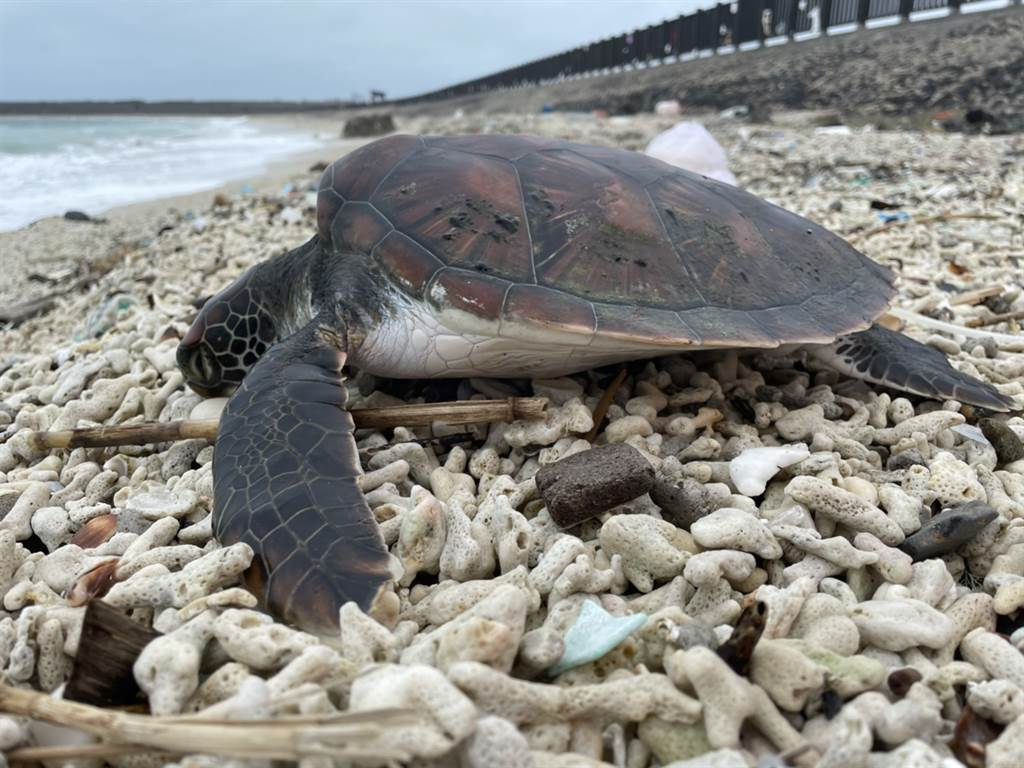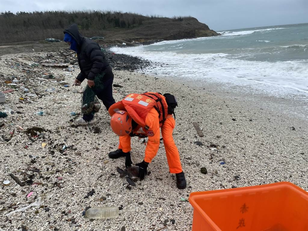 澎湖爆冷海龜也“凍”抹條,紛爬上岸取暖受困,海巡急救援。(臺(tái)海巡部門提供)