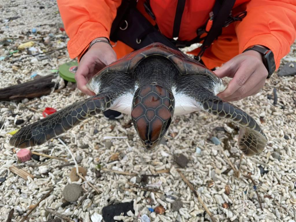 第7岸巡隊(duì)表示,昨天救援的活體海龜,經(jīng)農(nóng)漁局判定為玳瑁,體長(zhǎng)33公分、寬29公分,身上并無明顯的外傷,狀況仍良好。