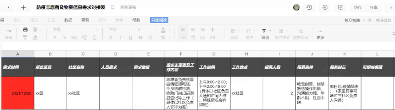 在石墨文檔團隊的支持下,西安聯(lián)合戰(zhàn)疫志愿團隊充分運用石墨文檔,進(jìn)行了志愿者招募,社區(qū)需求匹配、核心文件管理,志愿者戰(zhàn)疫經(jīng)驗總結(jié)撰寫等工作,大大提高了大規(guī)模志愿者協(xié)作的效率。