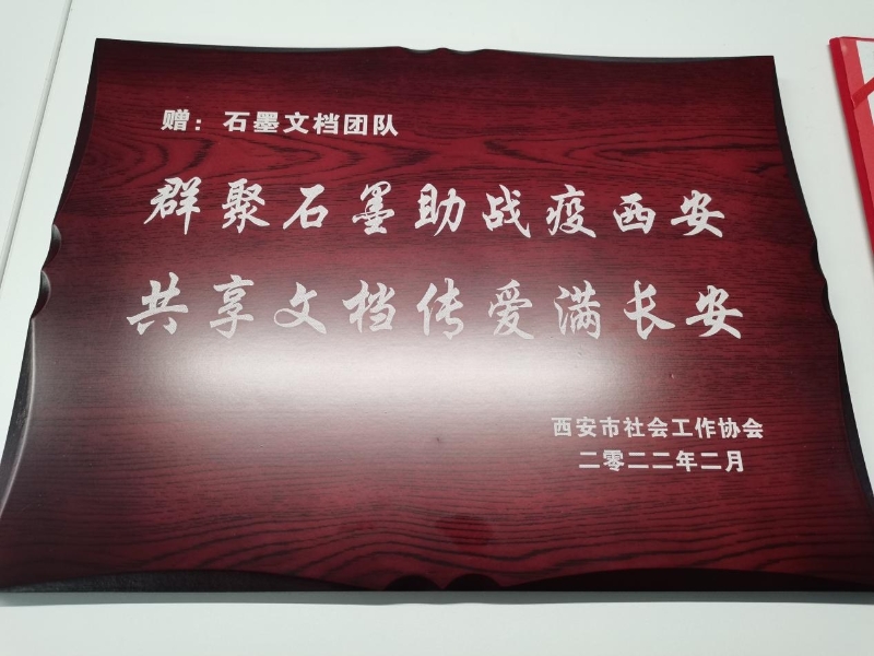 近日,石墨團隊收到西安市社會工作協(xié)會頒發(fā)的榮譽證書及獎牌,用以表彰石墨文檔在助力西安抗擊新型冠狀病毒肺炎疫情中提供的技術(shù)支持。