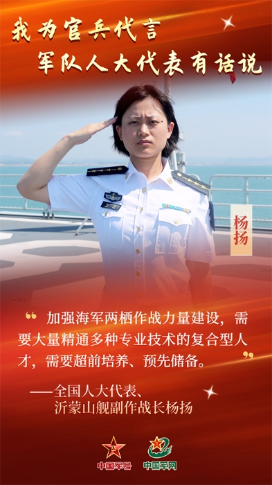 當(dāng)選第十三屆全國人大代表以來,楊揚(yáng)始終聚焦部隊(duì)?wèi)?zhàn)斗力提升和基層人才隊(duì)伍建設(shè),通過調(diào)研走訪、問卷調(diào)查、向相關(guān)業(yè)務(wù)部門咨詢等方式,先后提出意見建議70余條,包括艦艇官兵心理服務(wù)、基層士官骨干培養(yǎng)與保留、為軍人父母提供養(yǎng)老服務(wù)等方面。近年來,楊揚(yáng)所在艦結(jié)合實(shí)戰(zhàn)化訓(xùn)練,探索出新戰(zhàn)法訓(xùn)法,積累了寶貴的經(jīng)驗(yàn),培養(yǎng)了兩棲作戰(zhàn)人才。今年的人代會(huì)上,她結(jié)合工作實(shí)踐與調(diào)研結(jié)果,帶來了關(guān)于加強(qiáng)兩棲作戰(zhàn)力量建設(shè)的建議。她說:“加強(qiáng)海軍兩棲作戰(zhàn)力量建設(shè),需要大量精通多種專業(yè)技術(shù)的復(fù)合型人才,需要超前培養(yǎng)、預(yù)先儲(chǔ)備。”