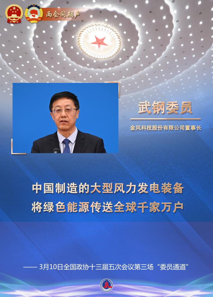 金風(fēng)科技股份有限公司董事長(zhǎng)武鋼委員用詳盡的數(shù)據(jù)和事實(shí),講述了我國(guó)風(fēng)電行業(yè)快速發(fā)展、助力實(shí)現(xiàn)“雙碳”目標(biāo)的綠色故事。