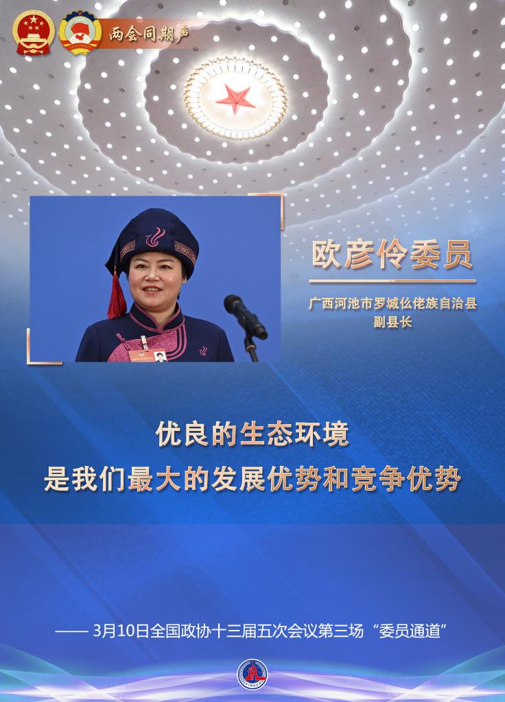 談到鞏固拓展脫貧攻堅(jiān)成果和全面推進(jìn)鄉(xiāng)村振興,來自廣西羅城仫佬族自治縣的歐彥伶委員信心滿滿:“優(yōu)良的生態(tài)環(huán)境是我們最大的發(fā)展優(yōu)勢(shì)和競(jìng)爭(zhēng)優(yōu)勢(shì)。”