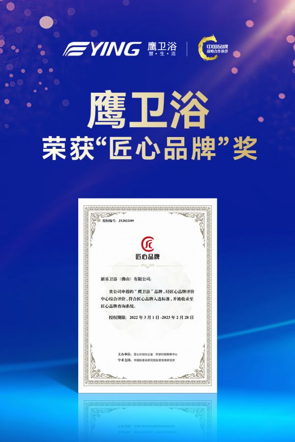 2022年3月,鷹衛(wèi)浴作為衛(wèi)浴行業(yè)引先品牌,憑借銳意進(jìn)取、勇于改變、探索不止的創(chuàng)新精神,從近300多個(gè)品牌中脫穎而出,共同榮膺“2021年匠心品牌”,這正是社會(huì)、消費(fèi)者、行業(yè)對(duì)鷹衛(wèi)浴品牌、品質(zhì)及企業(yè)實(shí)力的又一次肯定,同期入選的還有華為等品牌。