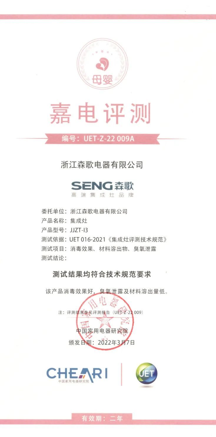 近日,森歌收到了由中國家用電器研究院根據(jù)《母嬰家電技術(shù)規(guī)范》測評的認(rèn)證報(bào)告,森歌U8集成洗碗機(jī)、i3和i3ZK兩款集成灶產(chǎn)品的技術(shù)規(guī)范達(dá)標(biāo)程度完全合格。在疫情大環(huán)境下,消毒這件事更加引發(fā)了人們的關(guān)注和重視。