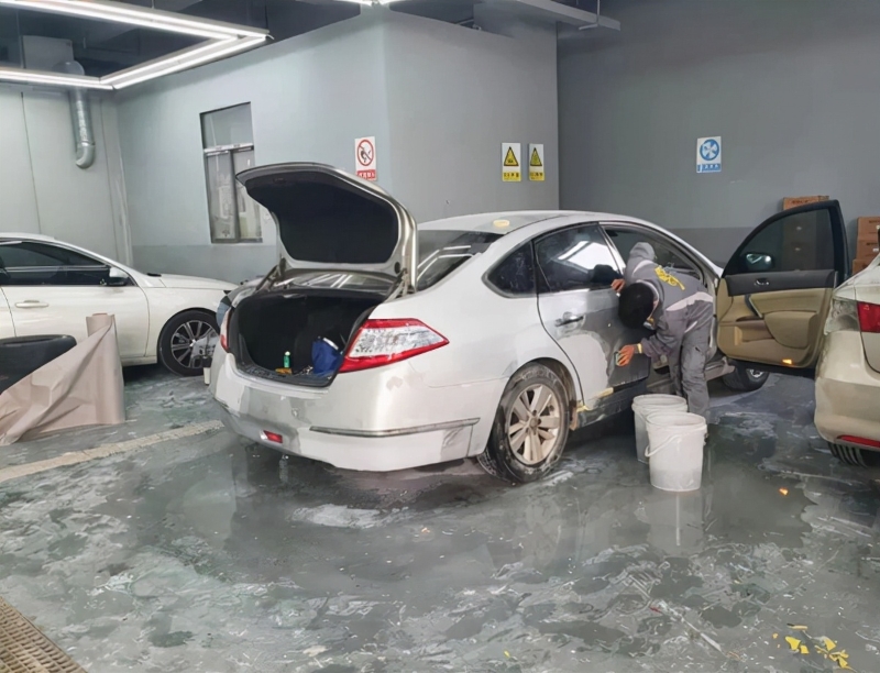 圖為杜先生車輛在維修廠進行修復(fù)。