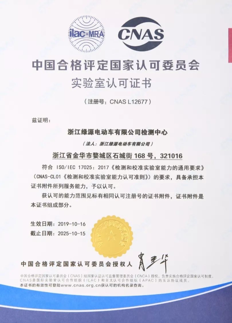 嚴(yán)苛檢驗(yàn)電動(dòng)車整車與部件,綠源CNAS認(rèn)可實(shí)驗(yàn)室與國(guó)際互認(rèn)