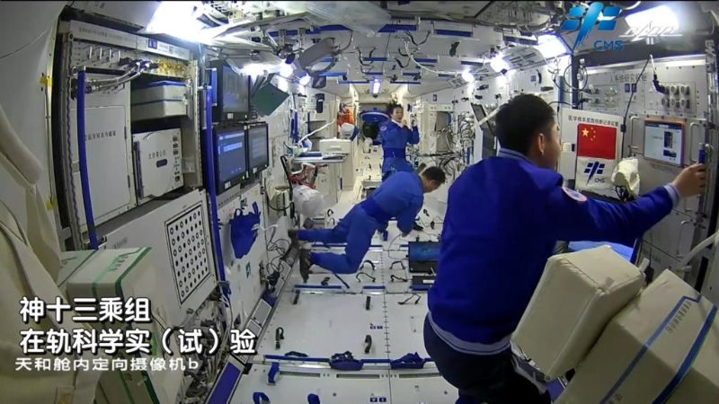 這是2021年11月21日中國載人航天官方網(wǎng)站視頻截圖,神十三乘組進(jìn)行在軌科學(xué)實(shí)(試)驗(yàn)。新華社發(fā)
