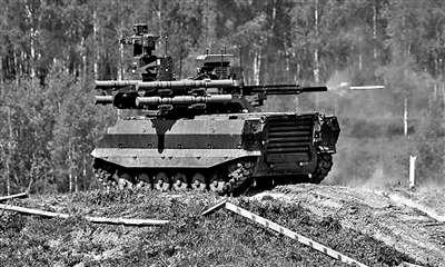 俄軍開(kāi)發(fā)了“天王星”系列軍用機(jī)器人等智能化武器。其中,“天王星-6”掃雷機(jī)器人采用履帶式底盤(pán),每小時(shí)可清掃雷區(qū)超過(guò)2000平方米,曾在敘利亞執(zhí)行掃雷任務(wù),表現(xiàn)出色。未來(lái),俄軍計(jì)劃為每個(gè)工程兵旅、團(tuán)級(jí)單位配備該型機(jī)器人。其改進(jìn)型“天王星-9”戰(zhàn)斗機(jī)器人,全重12噸,配備1門(mén)遙控作戰(zhàn)的30毫米機(jī)關(guān)炮,1挺機(jī)槍,以及4枚反坦克導(dǎo)彈,可在3000米范圍內(nèi)接受遙控指揮,被稱為俄版“變形金剛”。