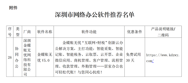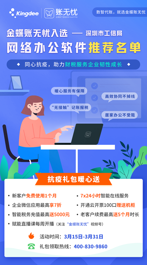 經(jīng)深圳市工業(yè)和信息化局動(dòng)員組織下,金蝶賬無憂入選深圳工業(yè)與信息化局網(wǎng)絡(luò)辦公軟件名單,并積極配合國(guó)家、省、市有關(guān)疫情的防控工作,助力財(cái)稅服務(wù)企業(yè)實(shí)現(xiàn)高效遠(yuǎn)程管理、有序在線辦公。攜手行業(yè)共抗疫,打贏疫情防控戰(zhàn)役、為穩(wěn)定經(jīng)濟(jì)社會(huì)大局提供有效的信息化解決方案。