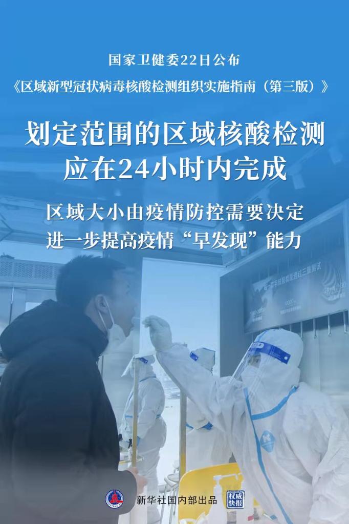 國(guó)家衛(wèi)生健康委3月22日公布《區(qū)域新型冠狀病毒核酸檢測(cè)組織實(shí)施指南(第三版)》,將第二版指南中的“全員”修改為“區(qū)域”,區(qū)域大小由疫情防控需要決定;強(qiáng)調(diào)核酸檢測(cè)應(yīng)該目標(biāo)明確、有的放矢,不能搞“一刀切”;明確推進(jìn)“抗原篩查、核酸診斷”的監(jiān)測(cè)模式……新版指南看點(diǎn)幾何?