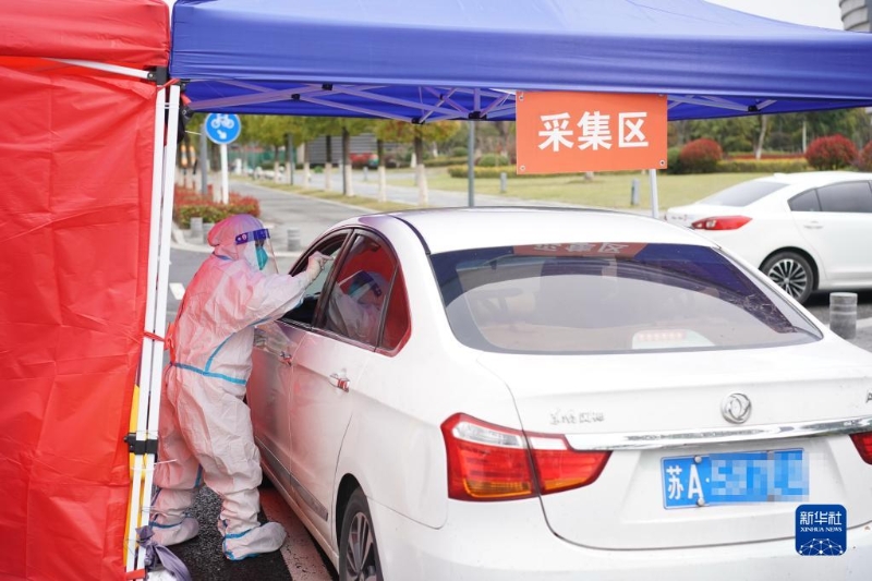 3月22日,在江蘇省南京市建鄴區(qū)核酸檢測專場現(xiàn)場,司機接受核酸采樣。新華社記者 季春鵬 攝