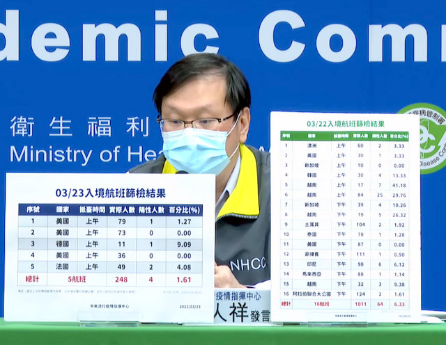 “流行疫情指揮中心”說明,今日新增境外移入個(gè)案為46例男性、47例女性、2例調(diào)查中,年齡介于未滿5歲至70多歲,分別自越南(34例)、菲律賓(5例)、荷蘭、澳大利亞、泰國及韓國(各3例)、香港、馬來西亞、印度、美國、新加坡(各2例)、羅馬尼亞、英國、意大利、加拿大、印度尼西亞、巴拉圭及波蘭(各1例)移入,另27例調(diào)查中。入境日介于2022年2月22日至3月22日。