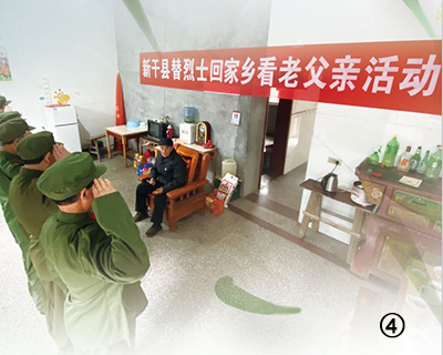 圖④:江西省新干縣退伍老兵替烈士看爹娘。