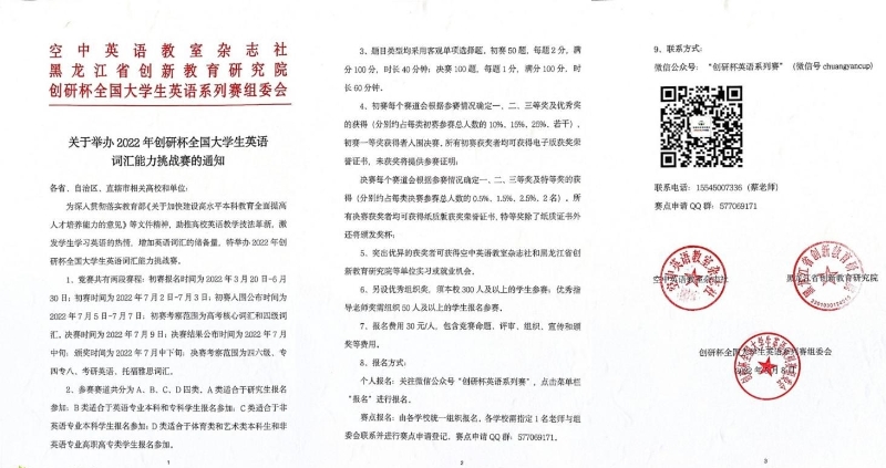 創(chuàng)研杯全國(guó)大學(xué)生英語(yǔ)系列賽組委會(huì)