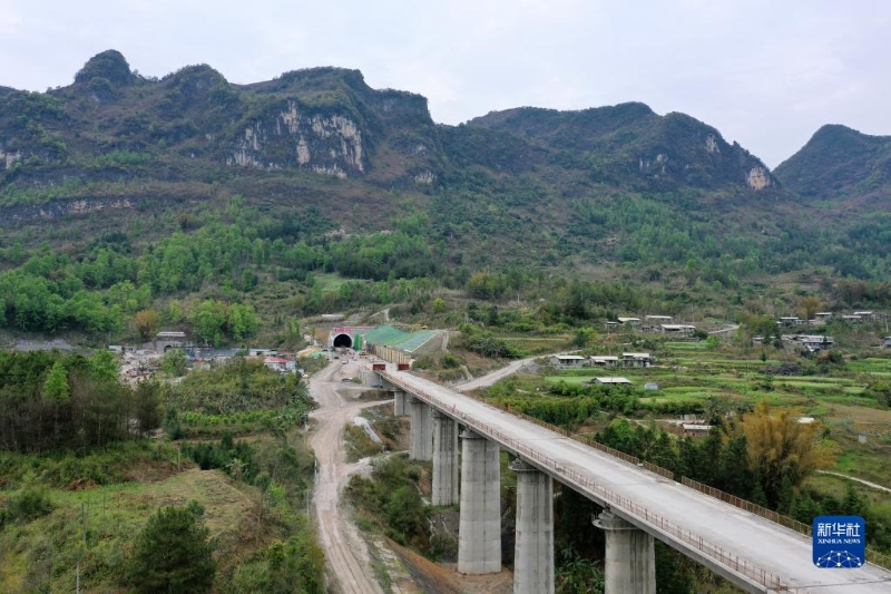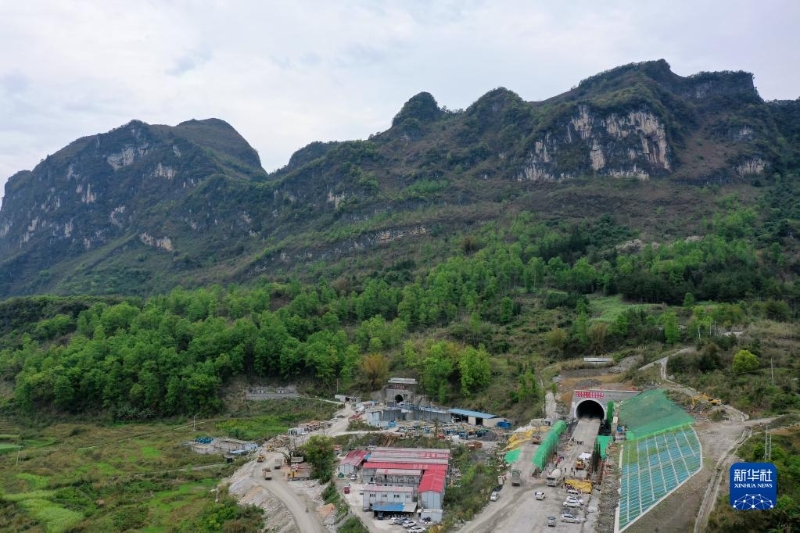 這是3月24日拍攝的九萬大山一號隧道出口(無人機(jī)照片)。