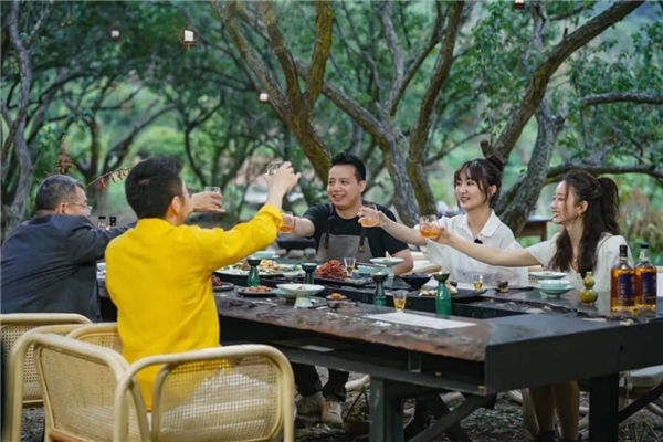 前不久,在神秘的北緯23度的一片青梅林里,藏著一座自然清新而又靜謐浪漫的森林酒館,中國梅酒文化推廣者梅見品牌在此策劃了一場曲水流觴席,并直播了這場宴會。