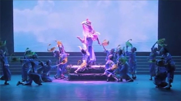 其熱俗處,百姓愛之,皆以為夏冰能舞我心我趣。登臺為戲,著青衣,玉樹姿,長袖善舞,顧盼風(fēng)致。首段俏花旦,借古典舞,點翻,串翻,小跳步,錯步,晃手,甩頭亮相。男領(lǐng)舞銅錘花臉《唱臉譜》大河納驚濤萬千,意氣軒昂、風(fēng)姿瀟灑。鋪墊慢板,青衣貴妃醉酒,時而芳菲嫵媚、時而靈動飄逸,輕移蓮步,嫵媚婀娜。時尚阿婆學(xué)戲,穿插快板,丑角幽默詼諧,神采飛揚(yáng)。高潮華彩,戲曲舞蹈全面鋪排,有穿云裂石之力,有富貴鐘鼎氣象,飛凌戲曲,舞動天下,昆石之潤,鈞天之樂,大國浩蕩,嘆為觀止。