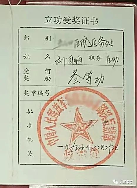 ▲劉國炳的立功證書