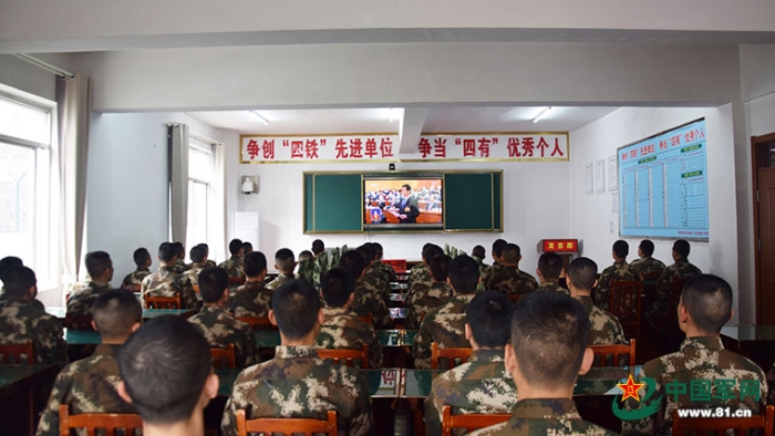 基層分隊(duì)收聽收看兩會(huì)直播實(shí)況 孫烽豪 攝