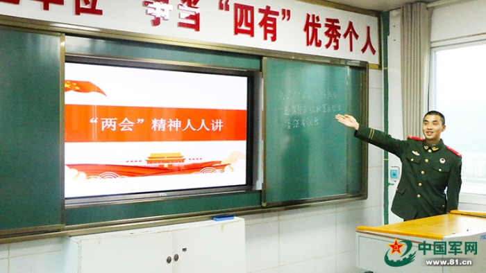 緊貼青年官兵興趣特點(diǎn),用活“一網(wǎng)一微一端”,推出兩會(huì)學(xué)習(xí)專題視頻,激發(fā)學(xué)習(xí)激情;采取軍營廣播和制作板報(bào)櫥窗的方式,拉近兩會(huì)與官兵的距離,引導(dǎo)官兵在拓寬視野中交流思想、深化認(rèn)識(shí)?! ?/p>