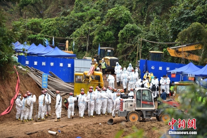 3月27日,在廣西梧州藤縣東航MU5735航班墜機(jī)救援現(xiàn)場,救援人員列隊準(zhǔn)備進(jìn)入核心區(qū)。