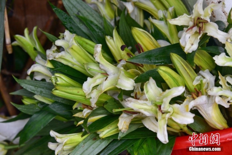 現(xiàn)場有鮮花提供給乘客家屬。中新社記者 王以照 攝