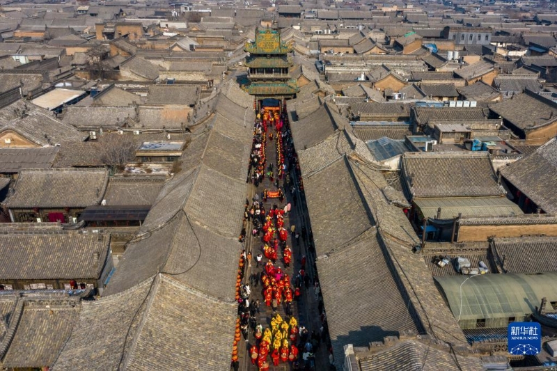 這是2月8日拍攝的平遙古城一角(無人機(jī)照片)。新華社記者 曹陽 攝