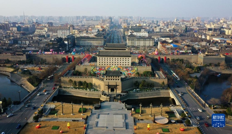 西安城墻永寧門(2020年3月4日攝,無人機(jī)照片)。新華社記者 劉瀟 攝