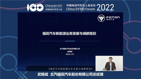 3月27日下午,北汽福田汽車股份有限公司總經(jīng)理武錫斌代表福田汽車參加了中國電動汽車百人會論壇(2022),在會上發(fā)表題為《福田汽車新能源業(yè)務(wù)發(fā)展與減碳規(guī)劃》的主旨演講。
