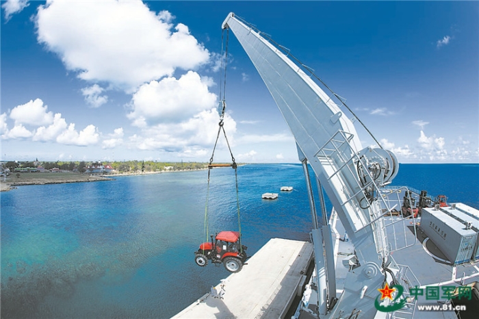 受領(lǐng)任務(wù)后,官兵們聞令而動(dòng),快速反應(yīng),定人員、劃路線、做方案,全面展開準(zhǔn)備工作。兩艘軍艦的“肚子”里,陸續(xù)裝滿了移動(dòng)板房、拖拉機(jī)、發(fā)電機(jī)、凈水器及應(yīng)急食品、醫(yī)療防疫器材等物資。