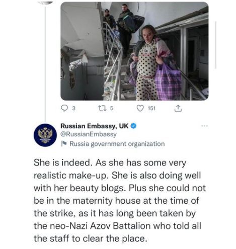 俄駐英大使館反駁西方關(guān)于“孕婦遭俄軍轟炸”事件。圖片來源:推特頁面截圖