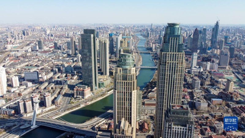 這是3月27日拍攝的天津海河上的多座橋梁(無人機(jī)照片)。