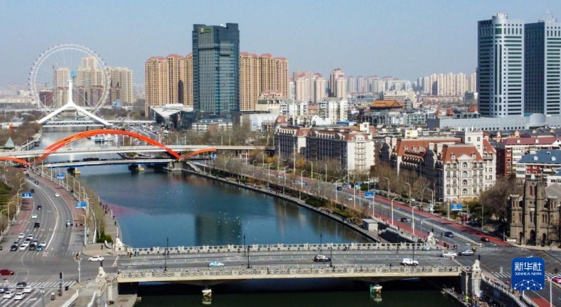 3月27日拍攝的天津永樂橋(無人機(jī)照片)。