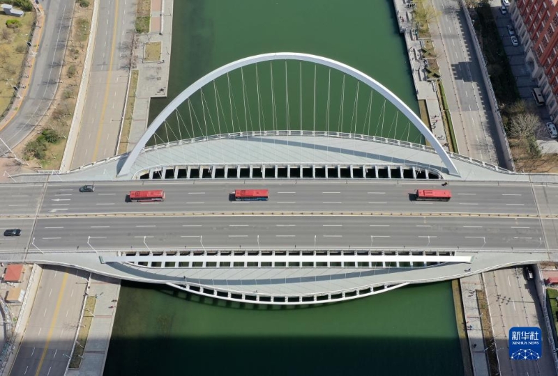 3月26日拍攝的天津大沽橋(無人機(jī)照片)?! ?/p>