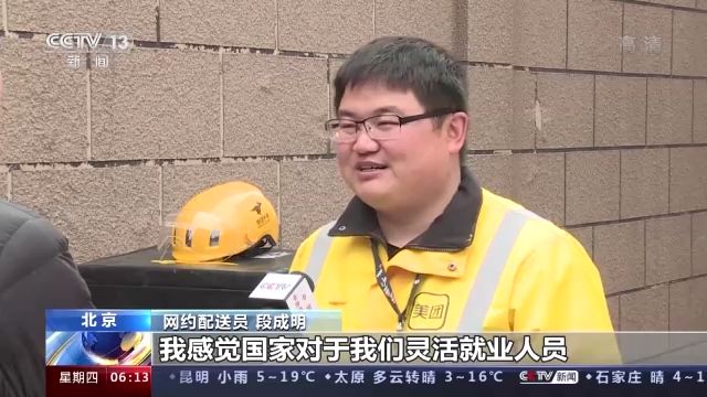 網(wǎng)約配送員 段成明:我感覺國(guó)家對(duì)于我們靈活就業(yè)人員關(guān)注度比較高,保障政策也是逐步在加強(qiáng)完善。讓我們覺得社會(huì)對(duì)我們的認(rèn)同度比較高。這個(gè)行業(yè)還是很有奔頭的。