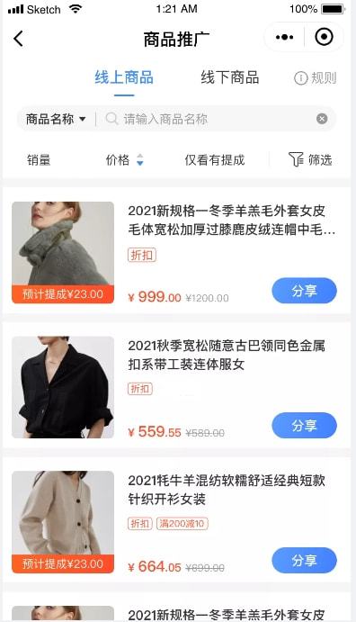 導(dǎo)購(gòu)可以在導(dǎo)購(gòu)端分享店內(nèi)的商品到自己的朋友圈或是微信群等地方,對(duì)商品進(jìn)行推廣