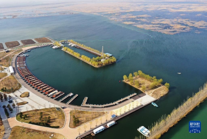 這是3月28日拍攝的雄安新區(qū)白洋淀旅游碼頭(無人機(jī)照片)。新華社記者 朱旭東 攝