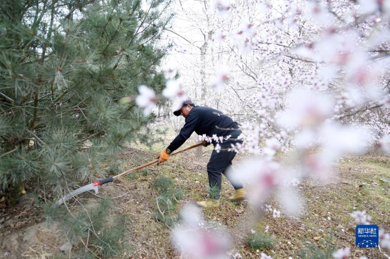 工作人員在雄安新區(qū)千年秀林修剪樹木(3月29日攝)。新華社記者 駱學(xué)峰 攝