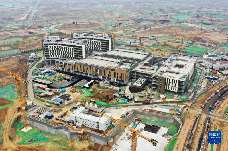 這是3月29日拍攝的雄安新區(qū)首都醫(yī)科大學(xué)宣武醫(yī)院雄安院區(qū)項(xiàng)目建設(shè)施工現(xiàn)場(無人機(jī)照片)。新華社記者 朱旭東 攝