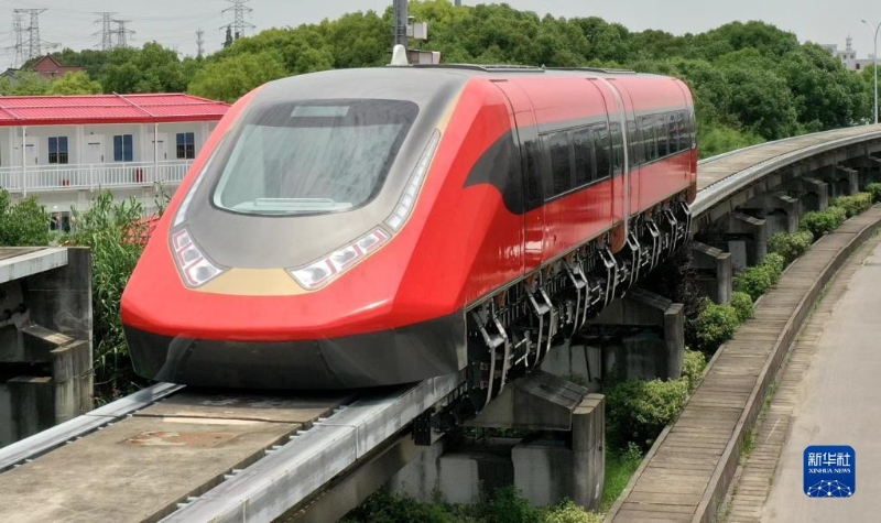 這是在上海同濟(jì)大學(xué)高速試驗(yàn)線上進(jìn)行動(dòng)態(tài)調(diào)試的磁浮3.0列車(2021年6月20日攝)。新華社發(fā)(梁超攝)