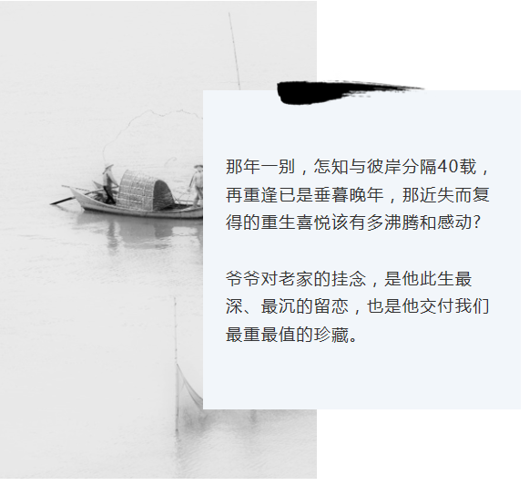 清明那天,我們先去叔叔老家拜爺爺和太公,太婆,再去他們的墓地焚香祭祖。叔叔說老家是他86年蓋的,93年時,爺爺和奶奶回老家時就住在里面,現(xiàn)在房子已經(jīng)沒住人了,已故的長輩們照片都放在房子前的桌子上,我凝視爺爺?shù)念^像,虔誠的手握三炷香拜了又拜,邊聽叔叔講當年爺爺從臺灣第一次回老家,住在這個房子的點滴,那時候的爺爺心情該是怎樣的激動與感恩?那年一別,怎知與彼岸分隔40載,再重逢已是垂暮晚年,那近失而復得的重生喜悅該有多沸騰和感動?