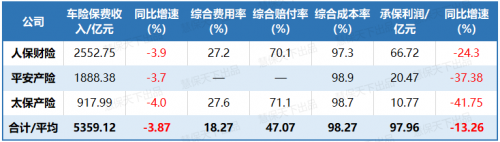 與人保財險非車業(yè)務(wù)綜合成本率高類似,平安產(chǎn)險的優(yōu)勢業(yè)務(wù)車險的綜合成本率也要高于其他兩家險企:平安產(chǎn)險為98.9%,人保財險為97.3%,太保產(chǎn)險則為98.7%。
