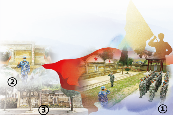 圖①:大悟縣民兵在烈士墓前整組點驗。