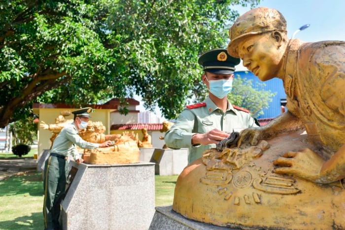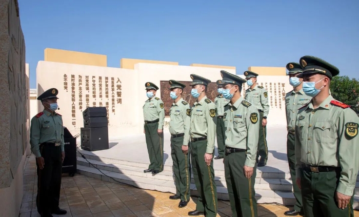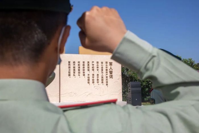 面對(duì)著烈士浮雕重溫軍人誓詞