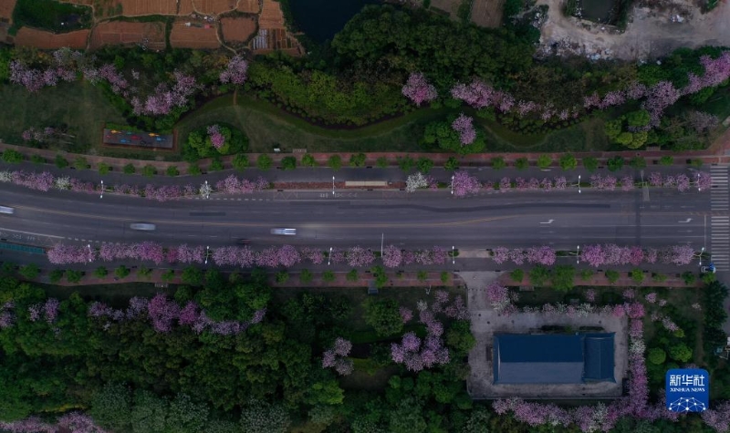 日前,廣西柳州市洋紫荊競相綻放,市區(qū)變成花的海洋。