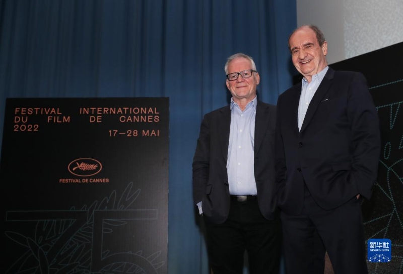 4月14日,戛納電影節(jié)主席皮埃爾·萊斯屈爾(右)與戛納電影節(jié)藝術(shù)總監(jiān)蒂埃里·弗雷莫出席在法國巴黎舉行的新聞發(fā)布會。新華社記者 高靜 攝