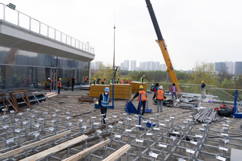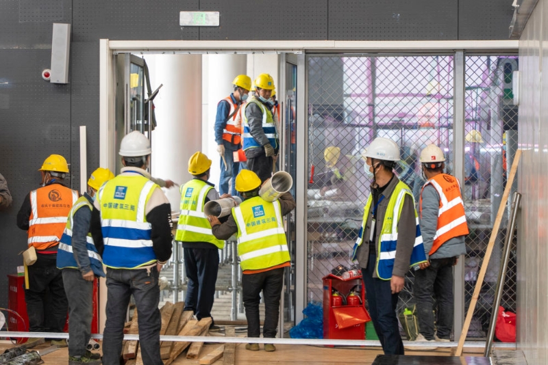 中建三局一公司的施工人員在施工現(xiàn)場(chǎng)進(jìn)行施工作業(yè)